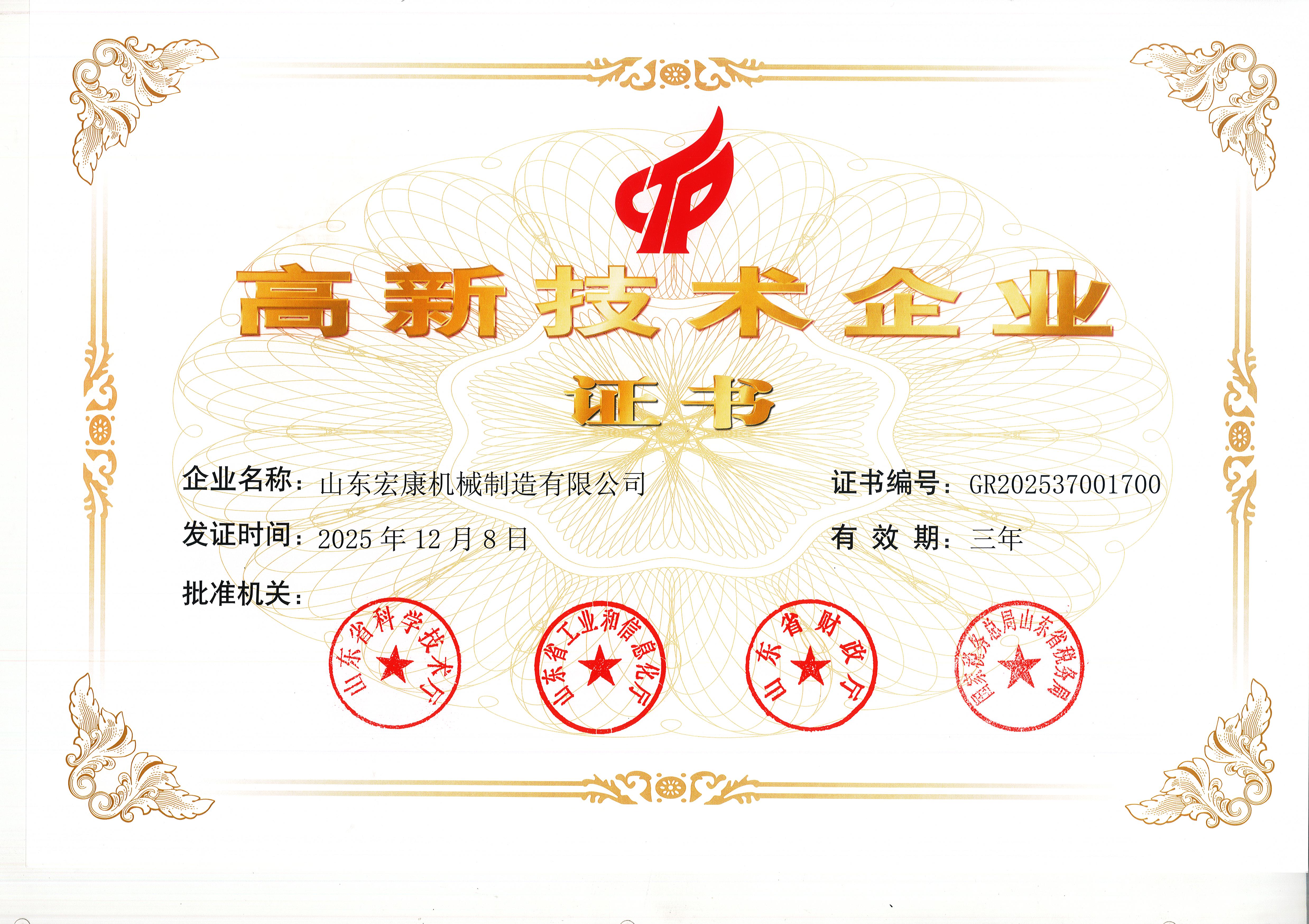 高新技術(shù)企業(yè)證書