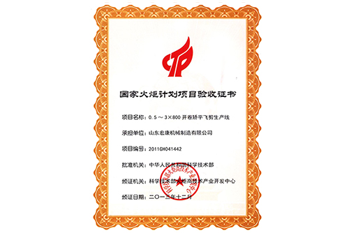 國家火矩計劃項目驗收書