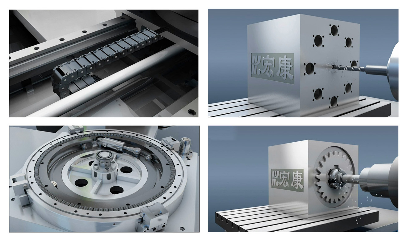 2、超短圓柱滾動(dòng)回轉(zhuǎn)工作臺(tái)專利(專利號:ZL 2010 1 0281167.1)技術(shù),使工作臺(tái)支撐能力和可靠性顯著提高。3、各坐標(biāo)軸伺服進(jìn)給裝置全部采用交流伺服電機(jī)驅(qū)動(dòng)、應(yīng)用預(yù)緊式滾珠絲杠、專用角接觸成組軸承支撐;4、上滑座、立柱采用直線導(dǎo)軌結(jié)構(gòu),精度高,便于安裝調(diào)試。5、主軸箱采用氮?dú)馄胶庀到y(tǒng),更加穩(wěn)定、可靠、安全。6、拖鏈內(nèi)置技術(shù),有效保護(hù)管路運(yùn)行系統(tǒng)、減少故障率,提高整體美觀度。