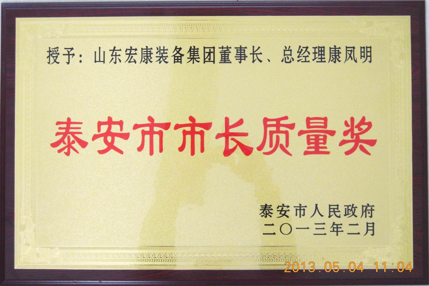 近日,泰安市人民政府下發(fā)《關(guān)于表彰獎(jiǎng)勵(lì)2012年度泰安市市長質(zhì)量獎(jiǎng)獲獎(jiǎng)單位和個(gè)人的通報(bào)》(泰政函【2013】15號(hào))文件,集團(tuán)董事長、總經(jīng)理康鳳明被授予2012年度“泰安市市長質(zhì)量獎(jiǎng)”,并受到獎(jiǎng)勵(lì)。